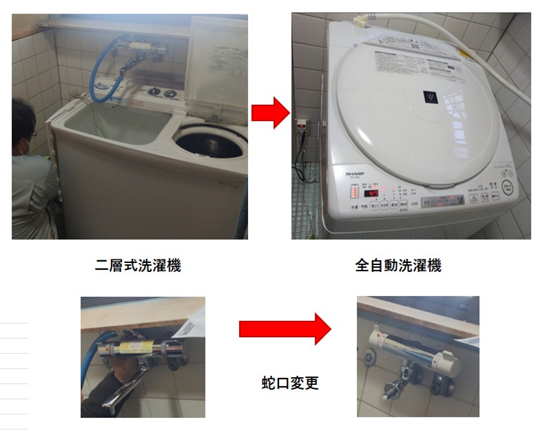 二層式洗濯機用の蛇口に全自動洗濯機を接続すると、ホース外れや吐水口折れによる水漏れ事故のリスクが非常に高まるため、必ず「全自動洗濯機用蛇口(緊急止水弁付きが推奨)」に交換が必要です。