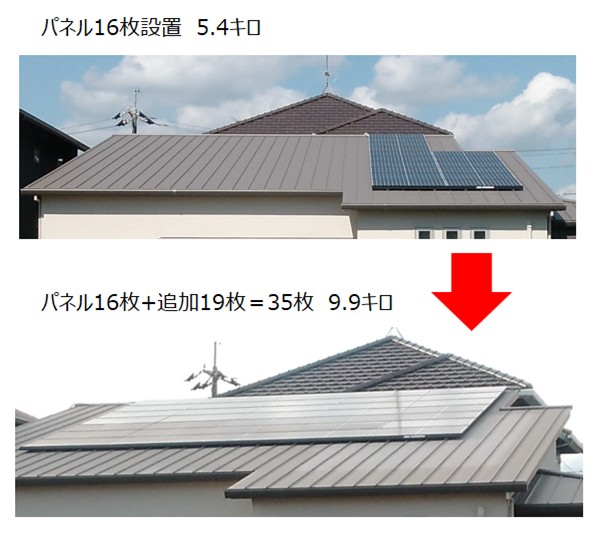 写真のお客様は、太陽光パネルを屋根の半分スペース16枚(5.4キロ)を載せていましたが、